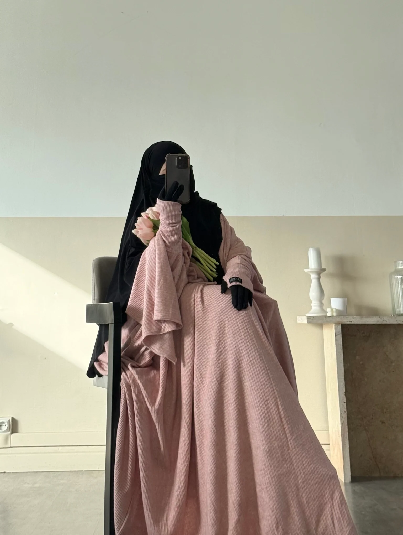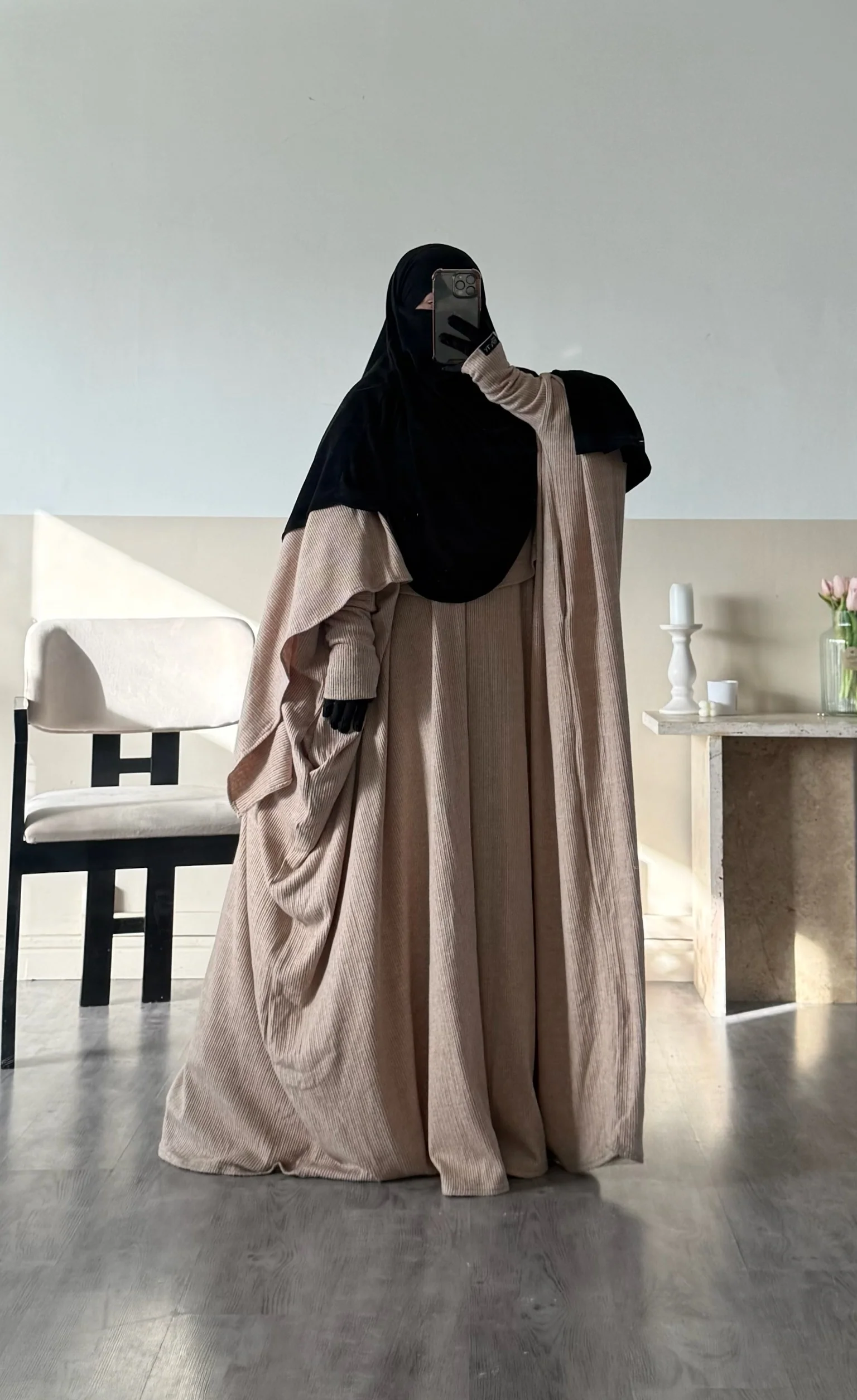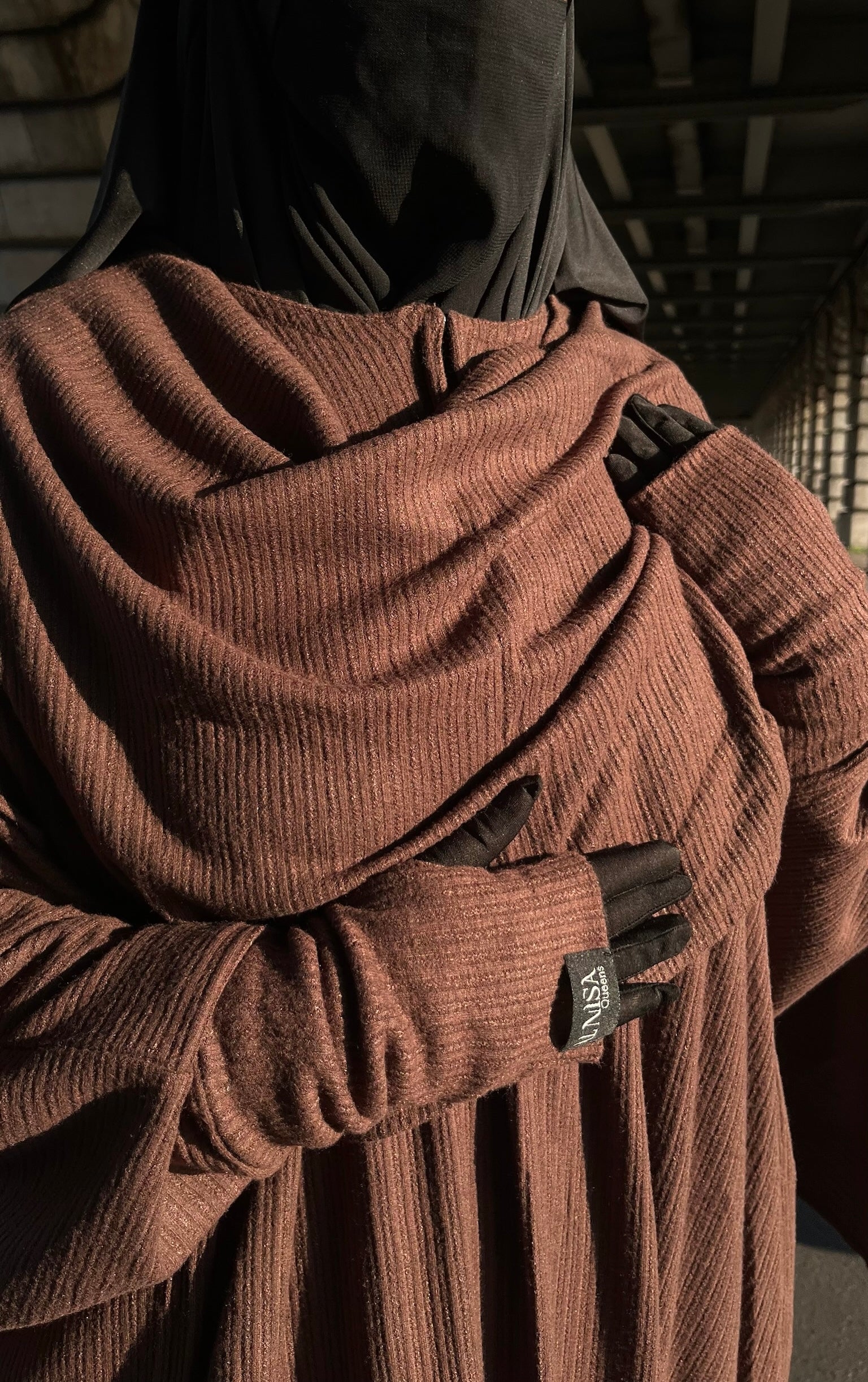 ♡ Idées/conseils : Notre abaya Saoudia hiver s’accorde parfaitement au khimar Joumana. Vous pouvez aussi l’associée au khimar Maleeka ou Maxi-hijab