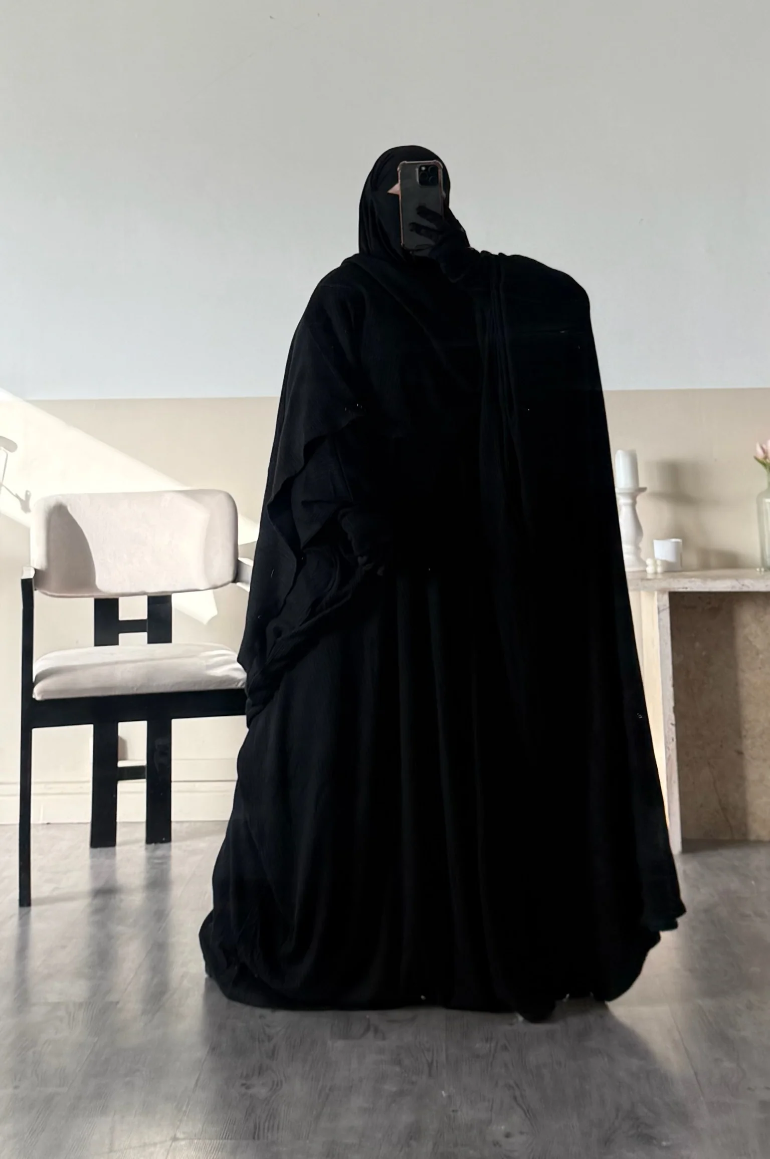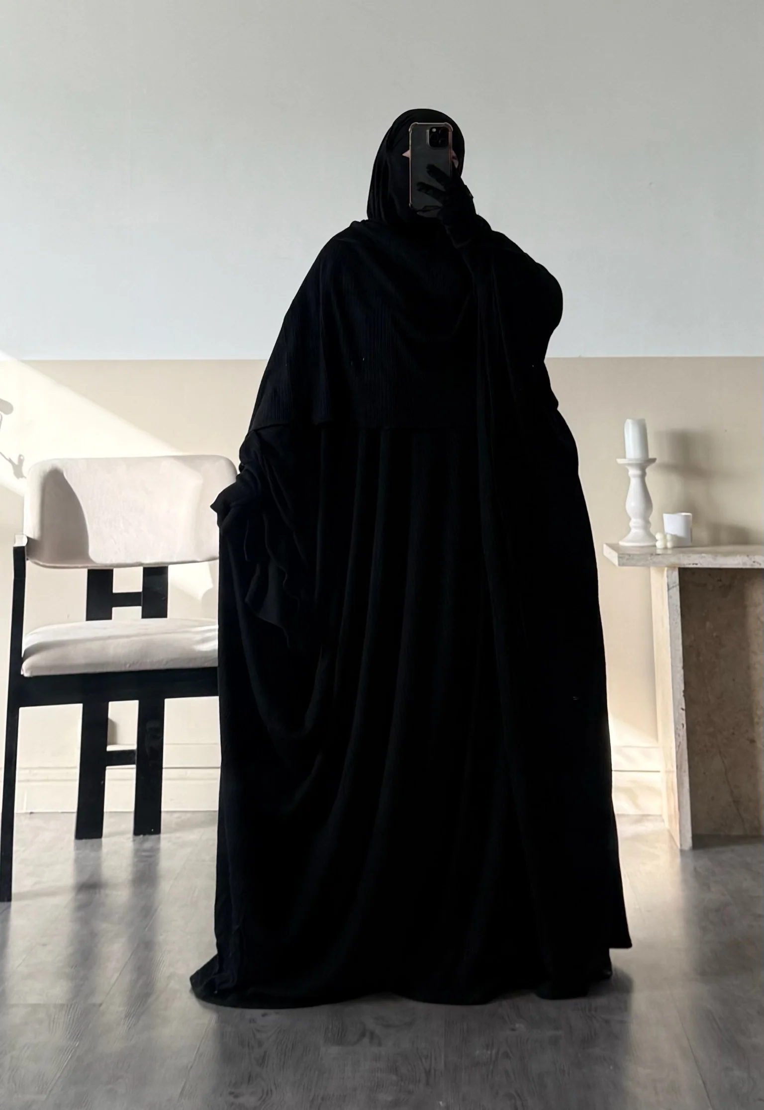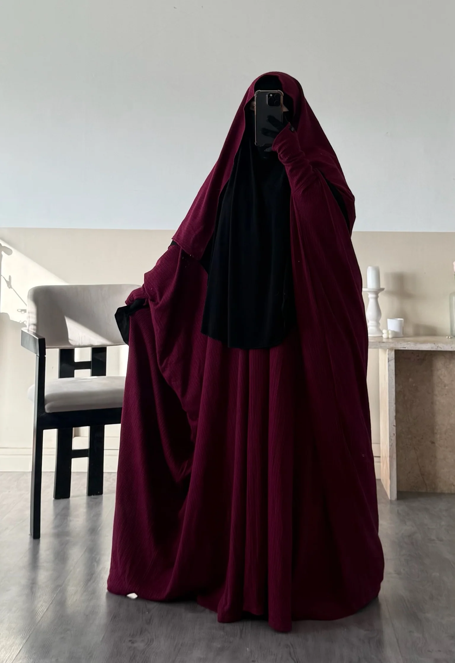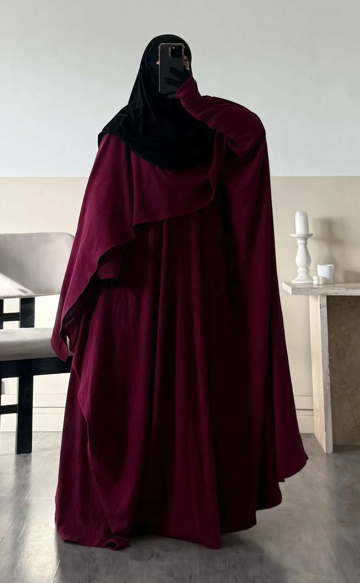 ♡ Idées/conseils : Notre abaya Saoudia hiver s’accorde parfaitement au khimar Joumana. Vous pouvez aussi l’associée au khimar Maleeka ou Maxi-hijab